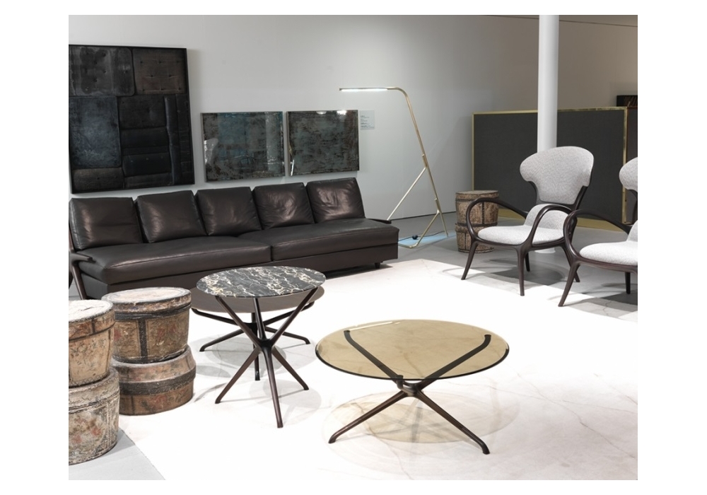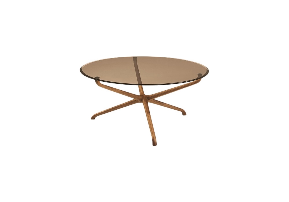 Croix De Bois Basso di Ceccotti Collezioni è tavolino realizzato in legno massello di noce americano, piano in vetro 10 mm temperato, ottone brunito o piano in marmo.