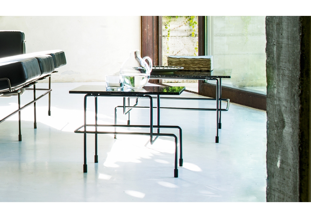 Traffic firmato da Konstantin Grcic per Magis è un tavolino con struttura in acciaio verniciato, piano in pietra acrilica con superficie levigata o in rovere impiallacciato naturale o nero.