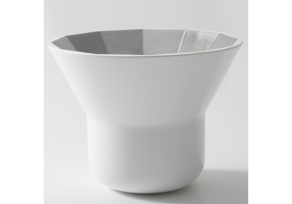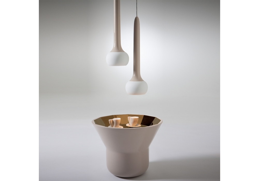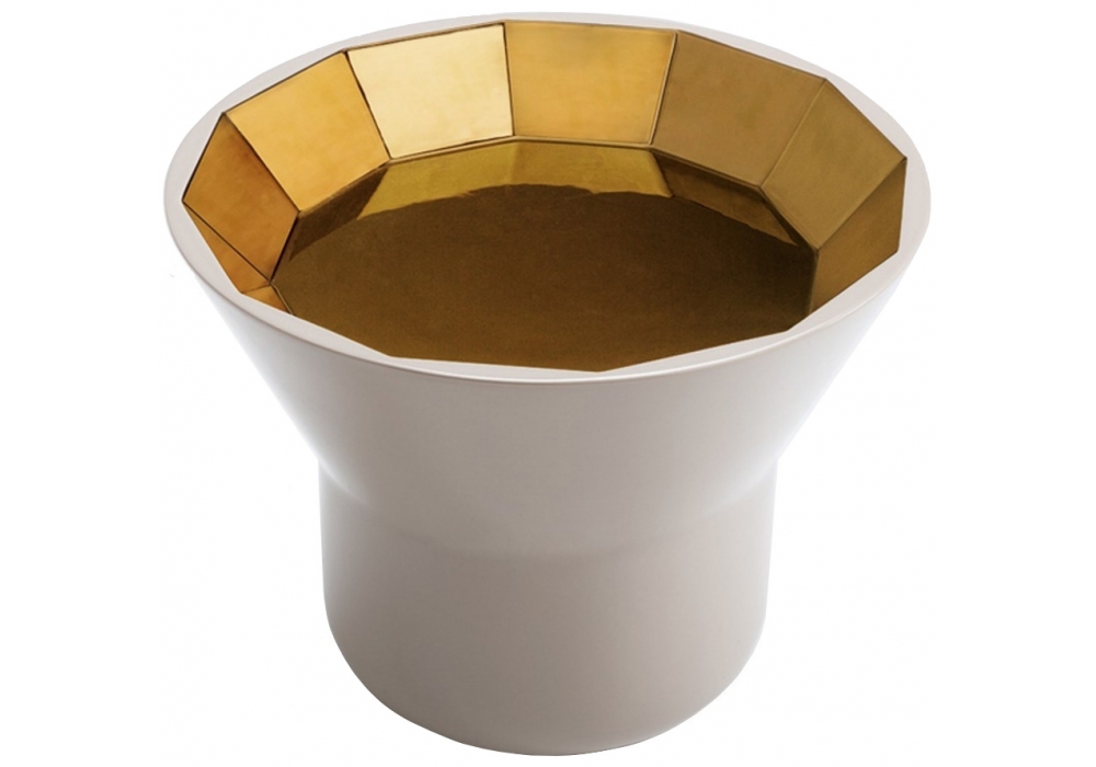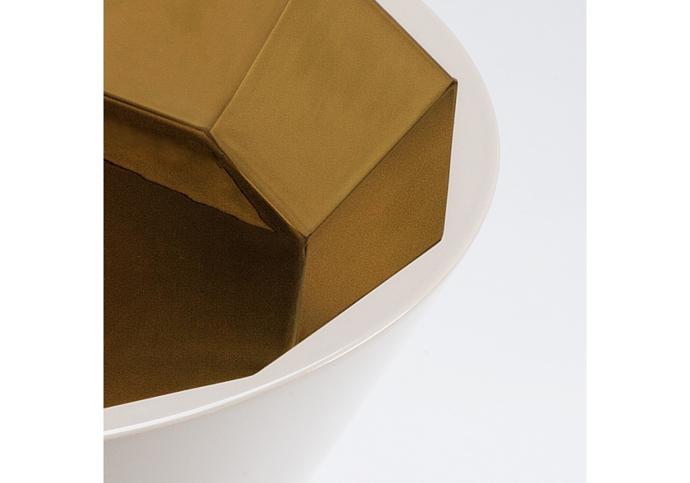 Joya Table firmato da Sam Baron per Bosa è un tavolino in ceramica con metallo prezioso nella parte superiore ispirato alle gemme che vengono incastonate nei gioielli. Joya Table ha una forma esterna molto minimal in contrasto con la ricchezza della parte concava sfaccettata interna in cui la luce allegramente riflette, come in una pietra preziosa.