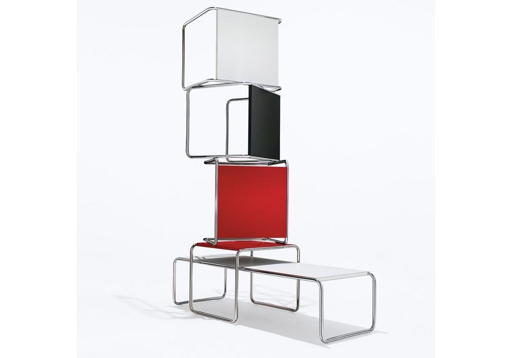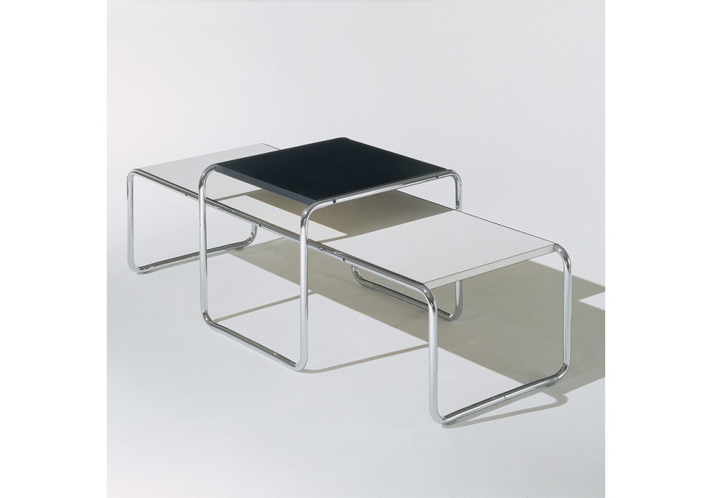 Laccio firmato da Marcel Breuer per Knoll è un tavolino d'appoggio con struttura in tubolare d'acciaio cromato o con verniciatura epossidica opaca in varie colorazioni. Piano in laminato o marmo in finitura poliestere brillante