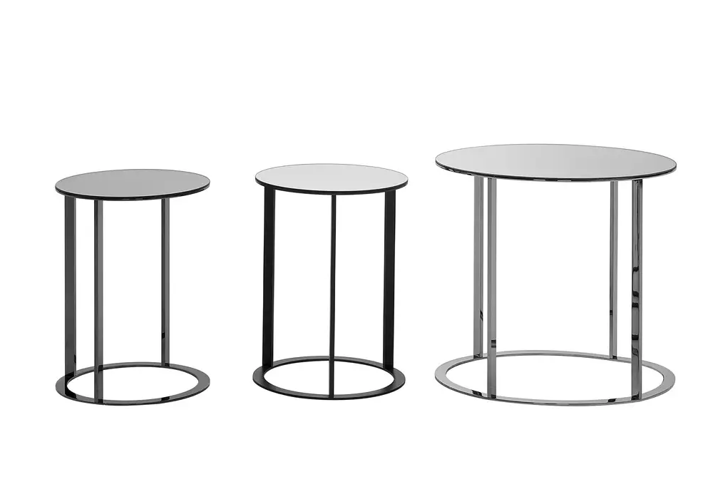 Elios firmato da Antonio Citterio per Maxalto è un tavolino con piano a specchio e struttura in acciaio cromato lucido o verniciato nickel bronzato.