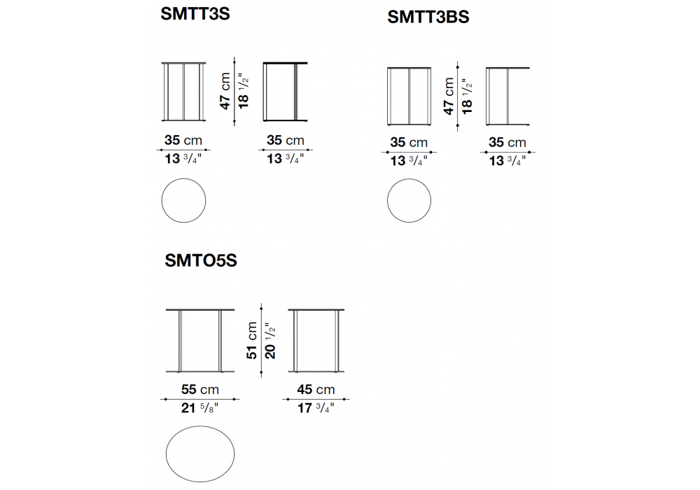 | Dimensioni | Ø 35 x H 47 cm; 55 x 45 x H 51 cm. |