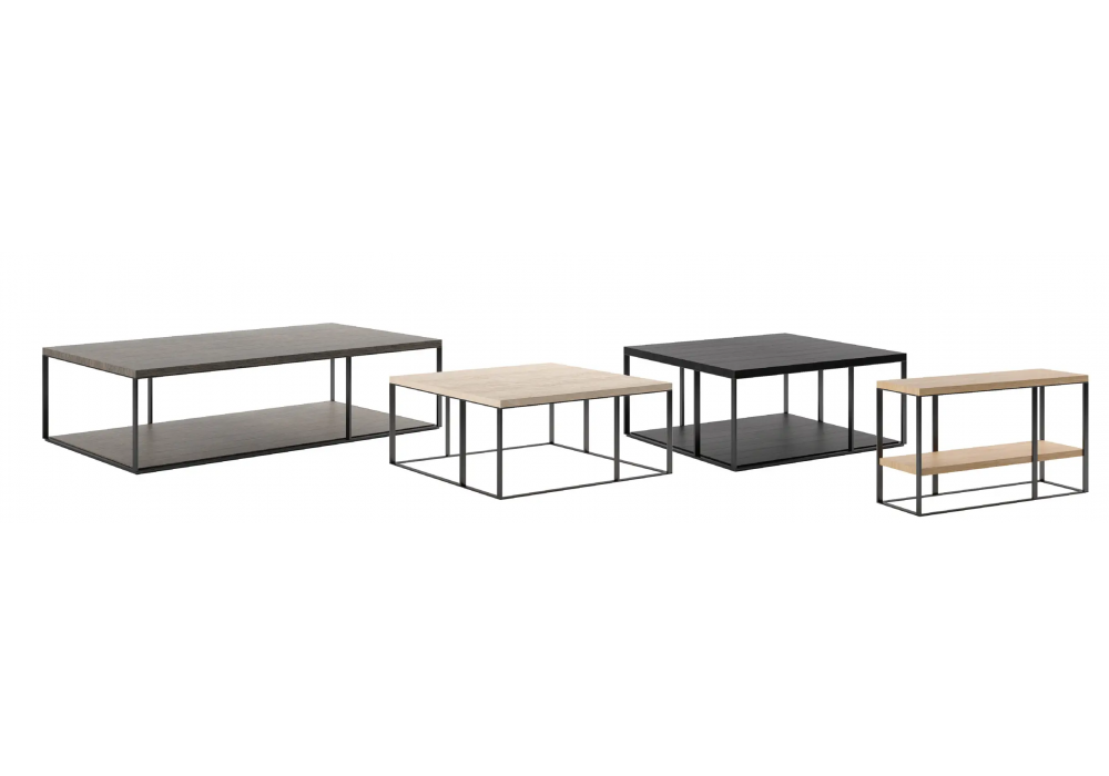 Lithos firmato da Antonio Citterio per Maxalto è tavolioi con piano in rovere grigio, rovere chiaro spazzolato, rovere nero spazzolato, segato bianco o wengé naturale. Struttura in acciaio verniciato in diverse finiture.