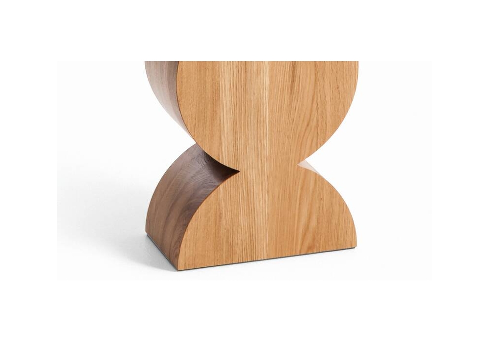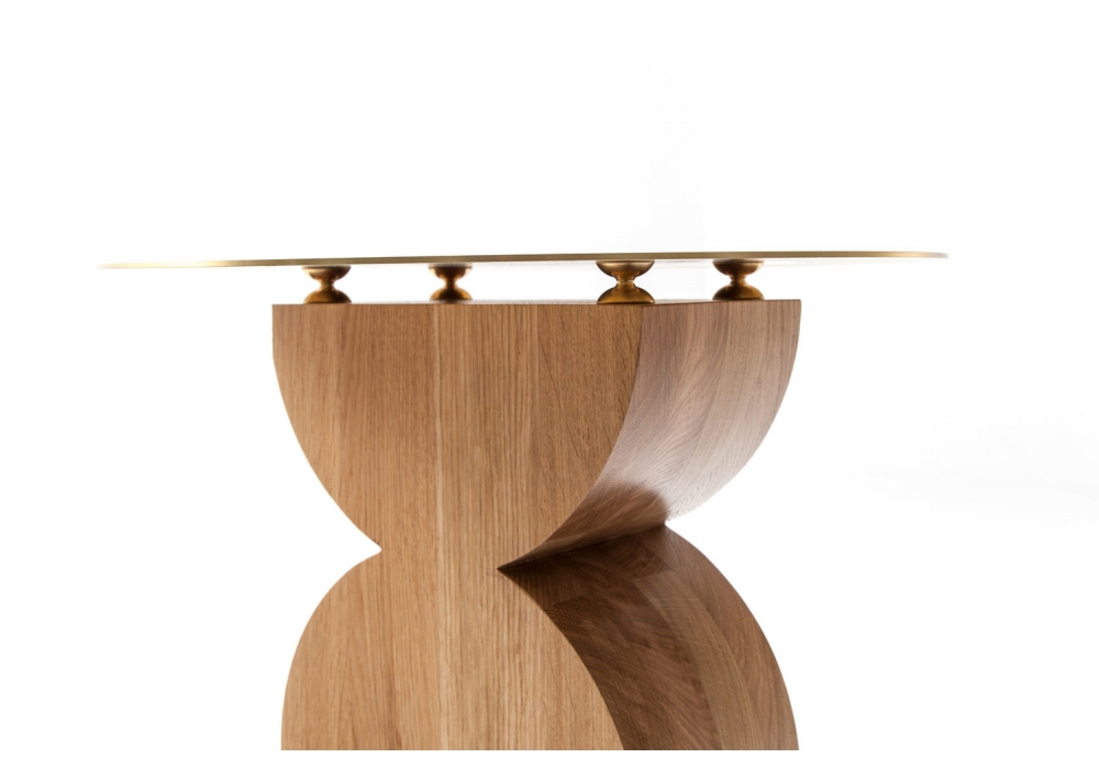 Constantin firmato da Constantin Brancusi per Cassina è un tavolino realizzato con base in legno massiccio di rovere con finitura a cera, piano in circolare in lamina di ottone con superficie spazzolata satinata e perni in ottone e boccole in nylon.