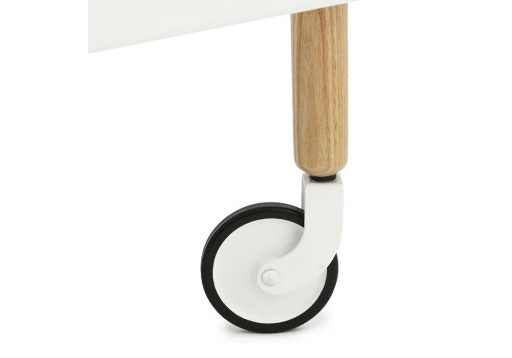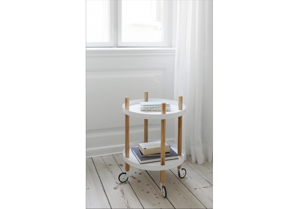 Block, firmato da Simon Legald per Normann Copenhagen è un tavolino, dalla forma quadrangolare o circolare in base al modello scelto, cotruito in legno di rovere e acciaio. la base è costituita da quattro ruote in metallo, con rotazione a 360° per facilitarne lo spostamento da un'ambiente ad un altro. Block è disponibile in due differenti modelli, quadrangolare o circolare è differenti finiture.