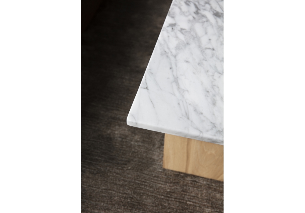 Solid, firmato da Lars Beller Fjetland per Normann Copenhagen è un tavolino, con struttura quadrangolare in legno di rovere laccato, e piano in marmo.