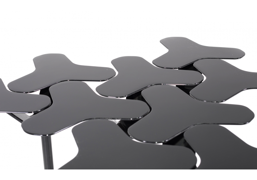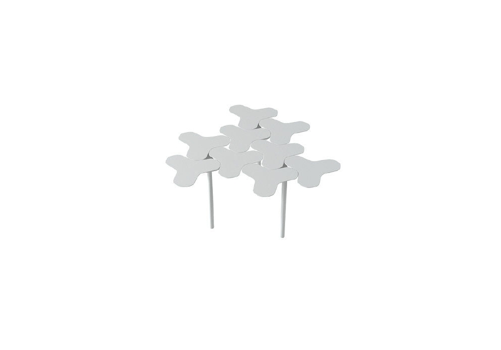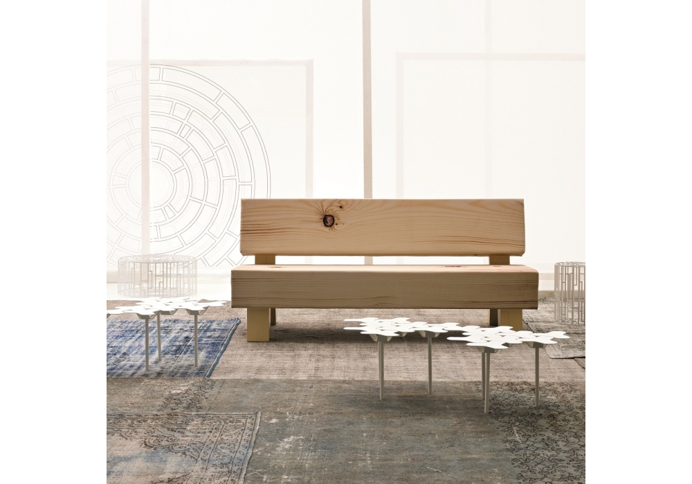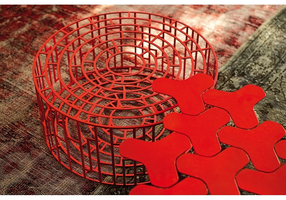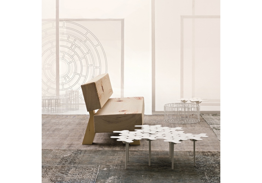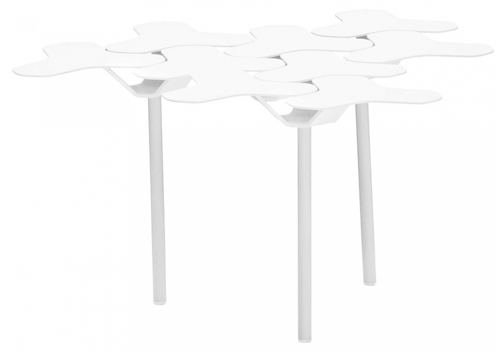 Nanook firmato da Philippe Bestenheider per Moroso è un tavolino realizzato in lamiera di acciaio e base in tubolare verniciato a polveri o cromato oro.
