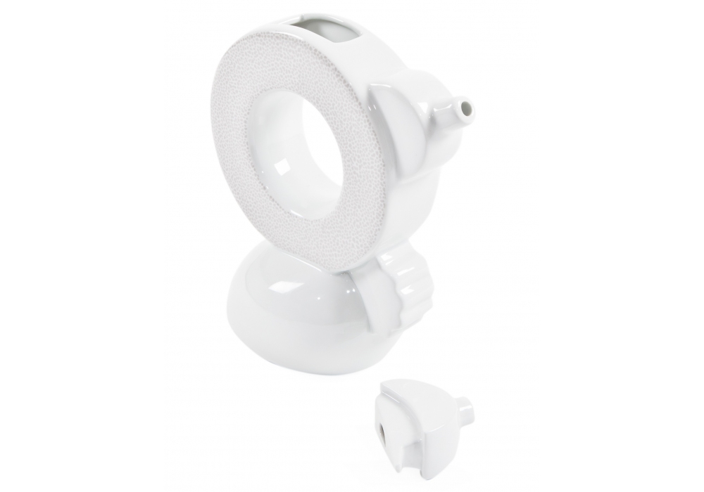 Chad firmata da Matteo Thun per Memphis Milano è una teiera realizzata in porcellana bianca con decori.