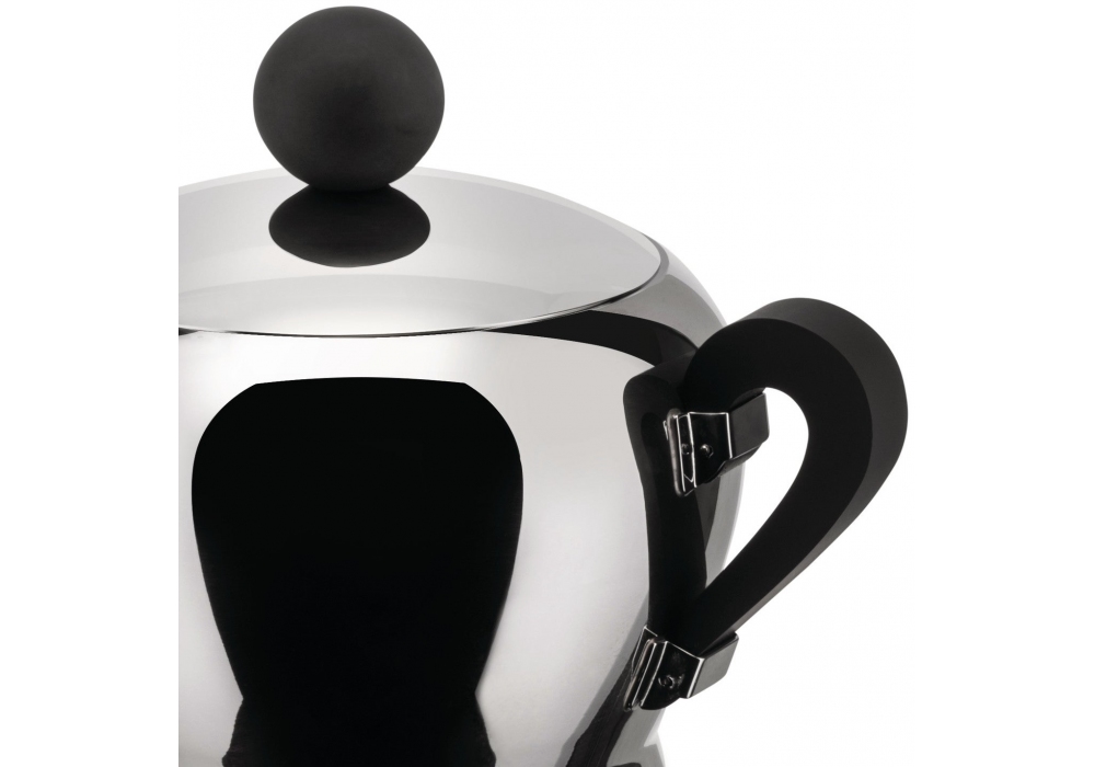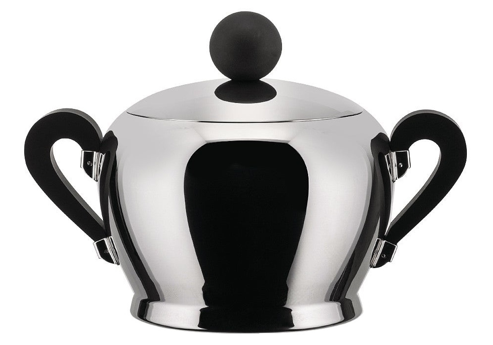 Bombé firmata da Carlo Alessi per Alessi è una zuccheriera realizzata in acciaio inox lucido 18/10 e bachelite.