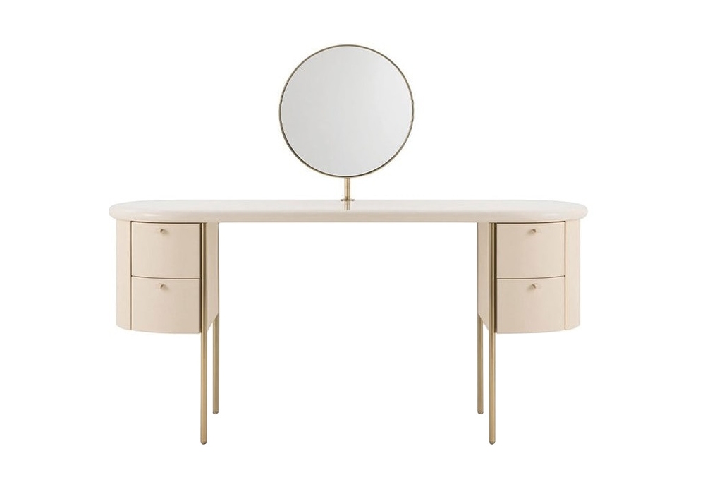 Roma firmata da Monica Armani per Turri è una toeletta con struttura in MDF e multistrato in finitura laccata lucida con rivestimento in differenti pelli. Parti metalliche in due finiture. Disponibile nella versione con o senza specchio.