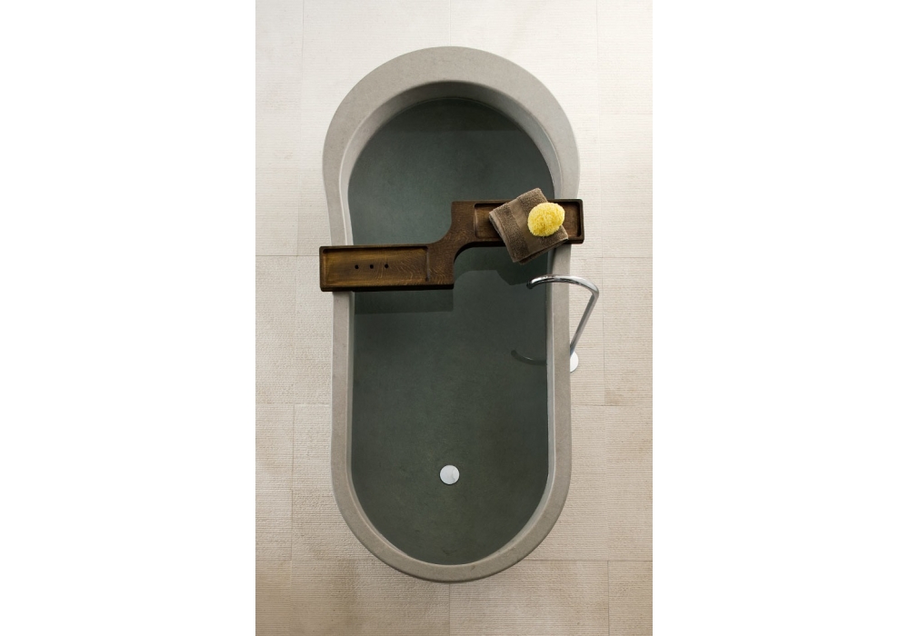 Alone firmata da Nespoli & Novara per Neutra è una vasca ovale dalla forma asimmetrica ricavata da un unico blocco di pietra disponibile in diverse finiture.