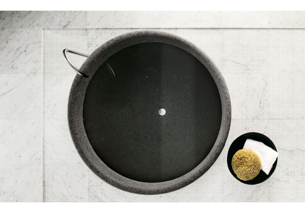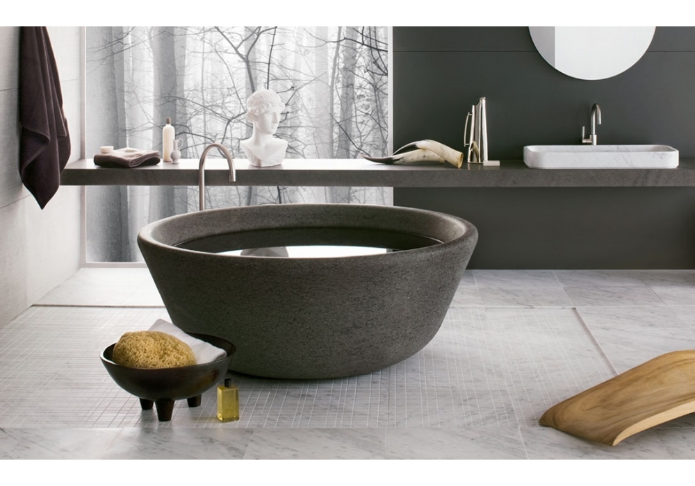 Spa firmata da Nespoli & Novara per Neutra è una vasca rotonda ricavata da un unico blocco di pietra disponibile in diverse finiture.