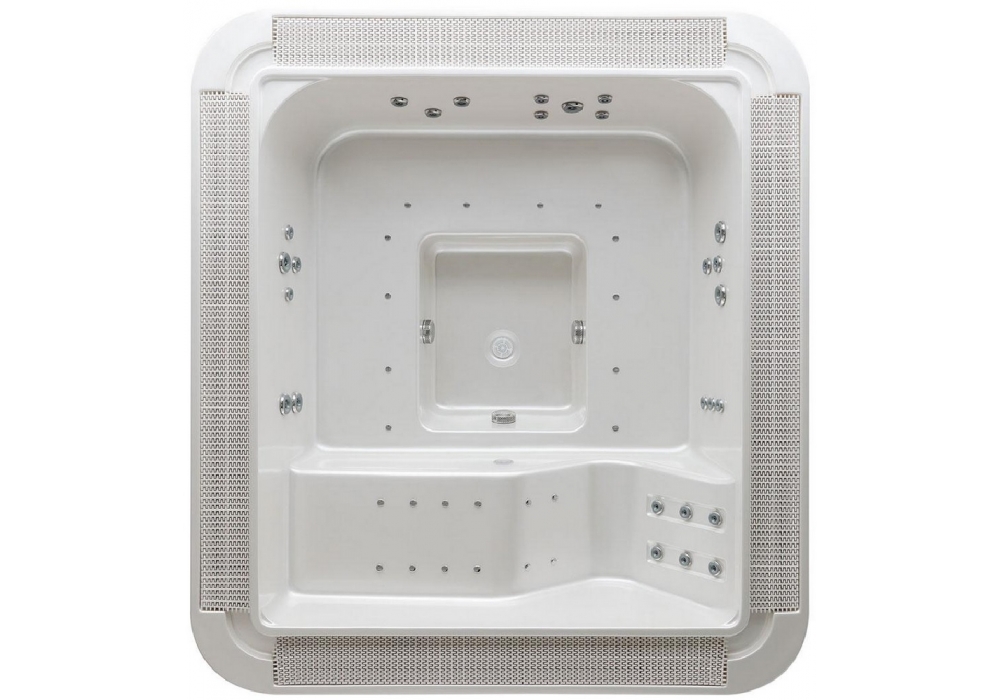 MySpa 0F250/225 firmata da Glass Lab è una minipiscina spa con 27 getti whirlpool, 24 getti airpool, cromoterapia, aromaterapia, comandi pneumatici esterni. Ozonizzatore opzionale. Copertura termica colore grigio obbligatoria. Disponibile anche in 3 versioni.