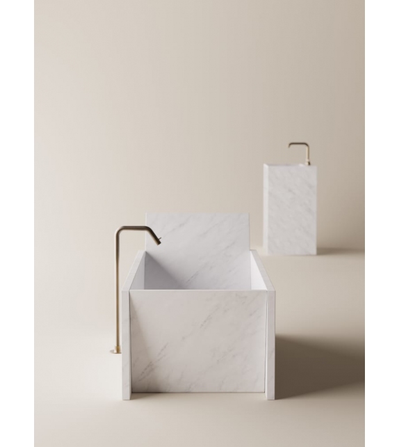 Face à face firmata da Jean Nouvel per Agape è una vasca da bagno realizzata con lastre di marmo disponibili in differenti finiture. Non sono previsti fori per la rubinetteria; che può essere collocata a terra o a parete.