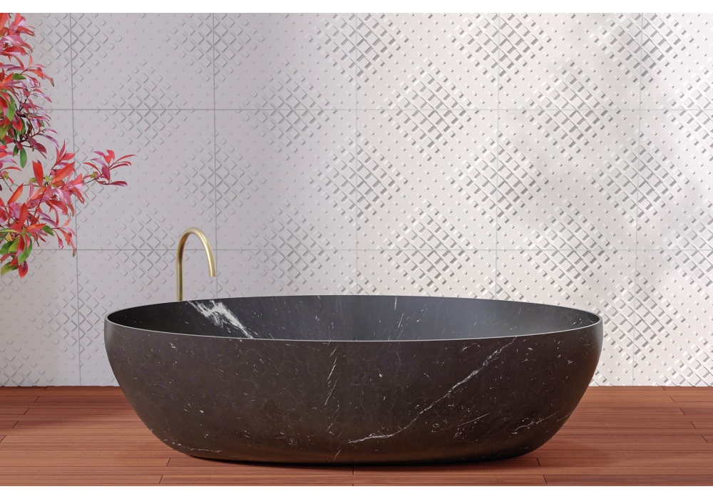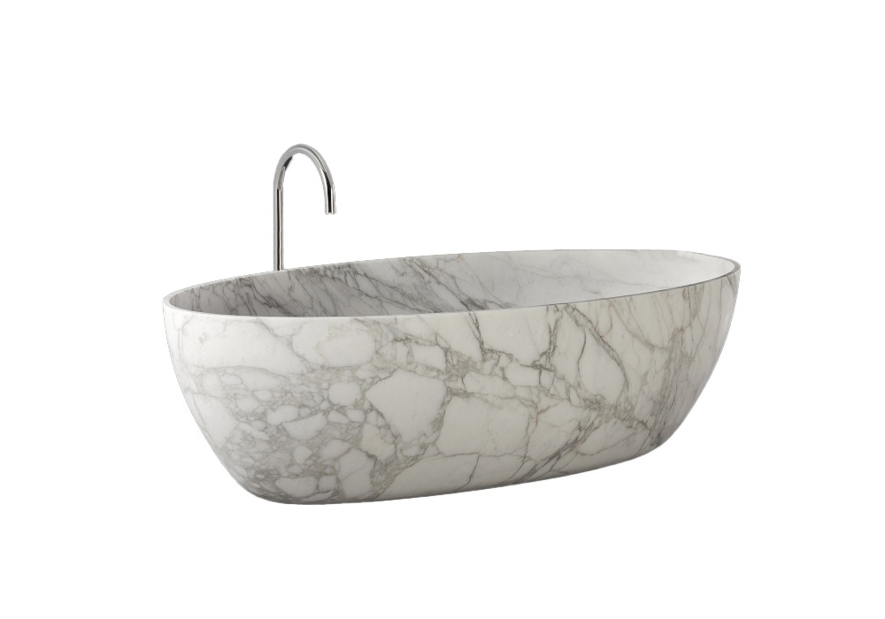Venice firmata da Kreoo Studio per Kreoo è una vasca da bagno freestanding dalla forma ovale realizzata in marmo in diverse finiture.