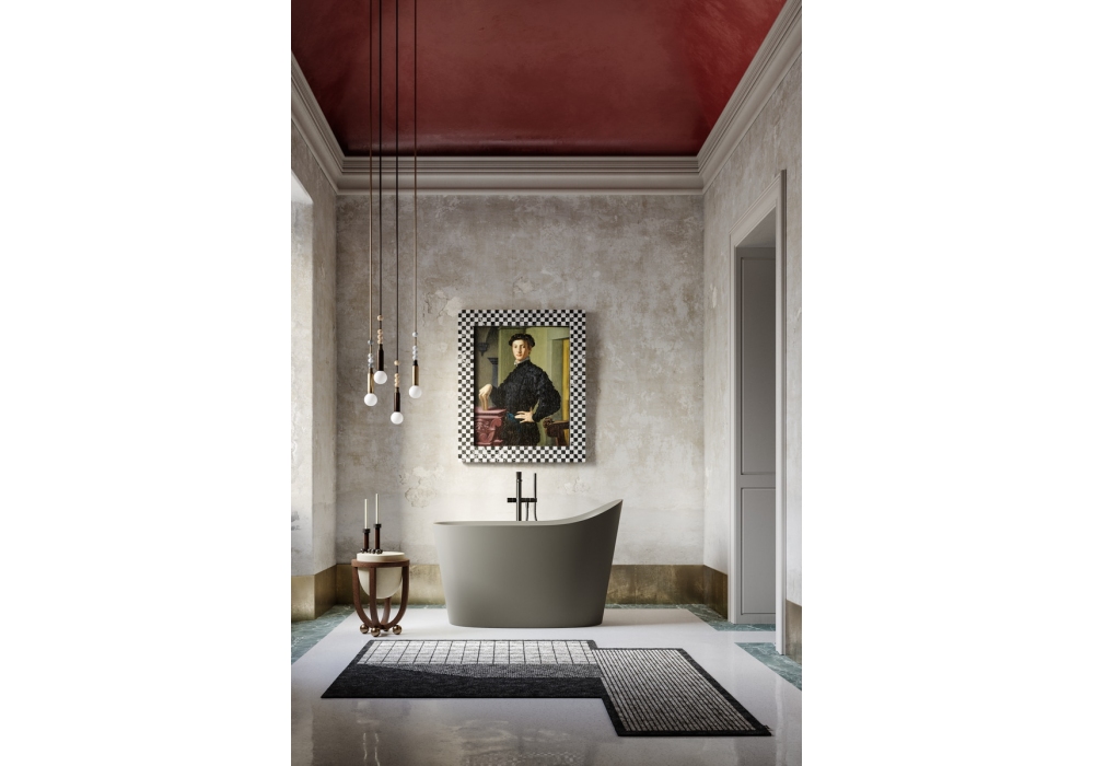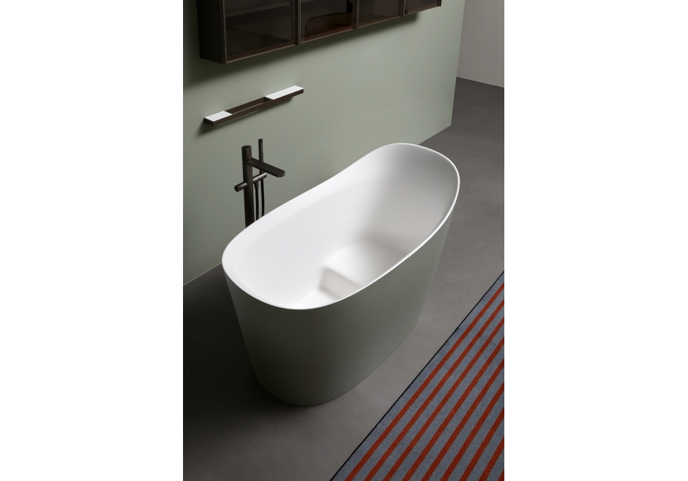 Mastello firmata da Mario Ferrarini per Antonio Lupi è una vasca da bagno ovale realizzata con verniciatura in Flumood, verniciabile esternamente in tutti i colori del nostro campionario, in metallo liquido oppure in Colormood verniciabile internamente ed esternamente, completa di piletta con sistema di scarico a pressione clik clak, sifone e tubo flessibile.