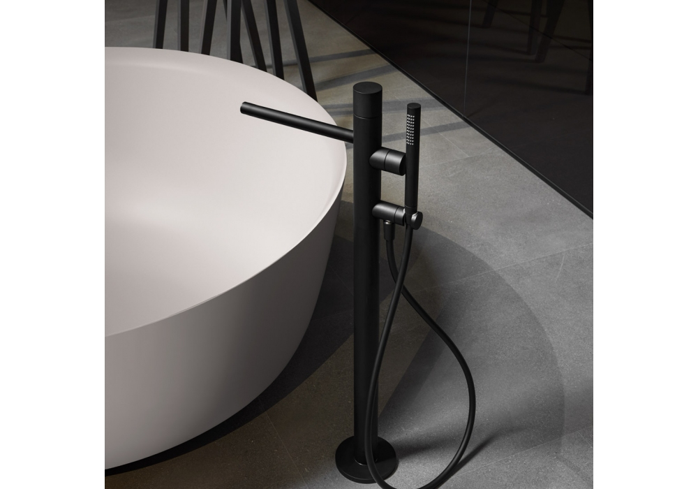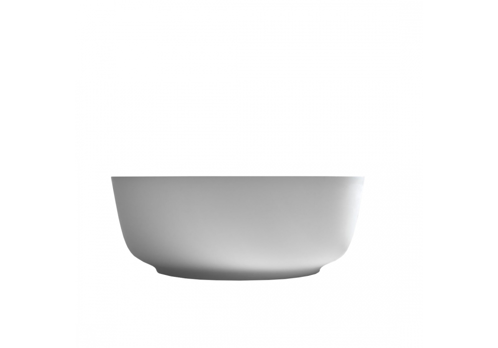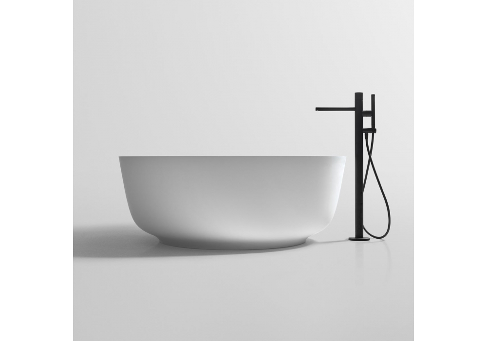 Orion firmata da Mario Ferrarini per Antonio Lupi è una vasca da bagno tonda in pietra o in Cristalplant, completa di piletta.