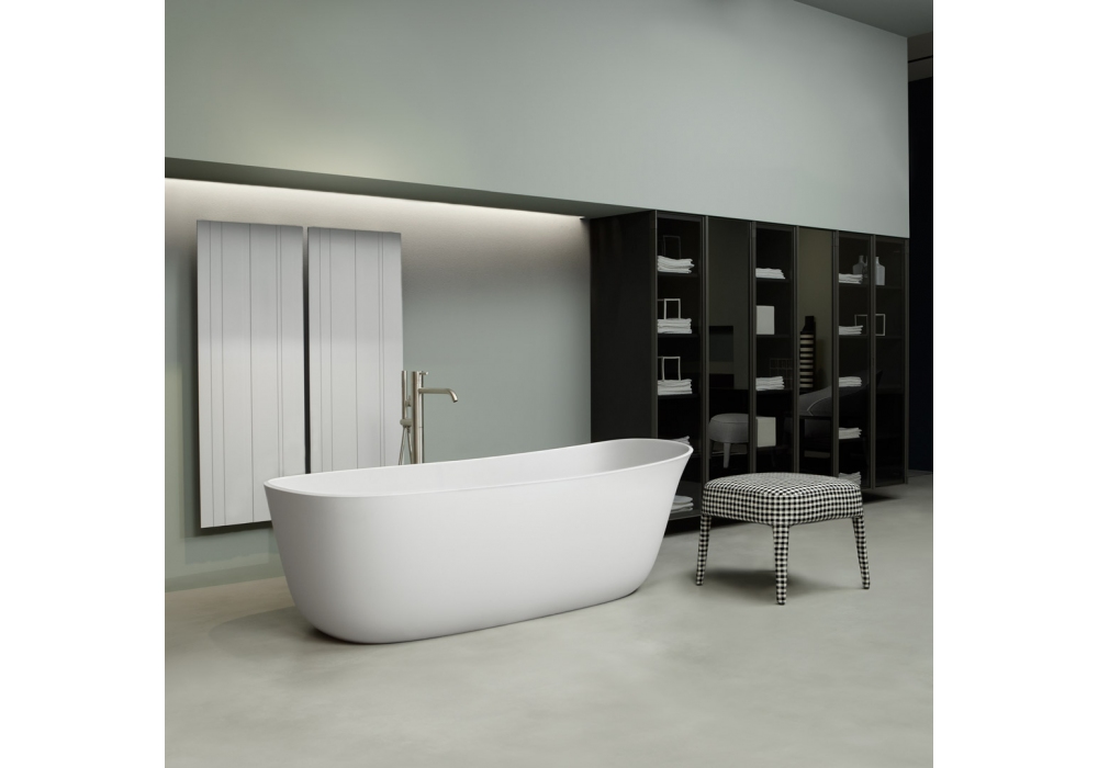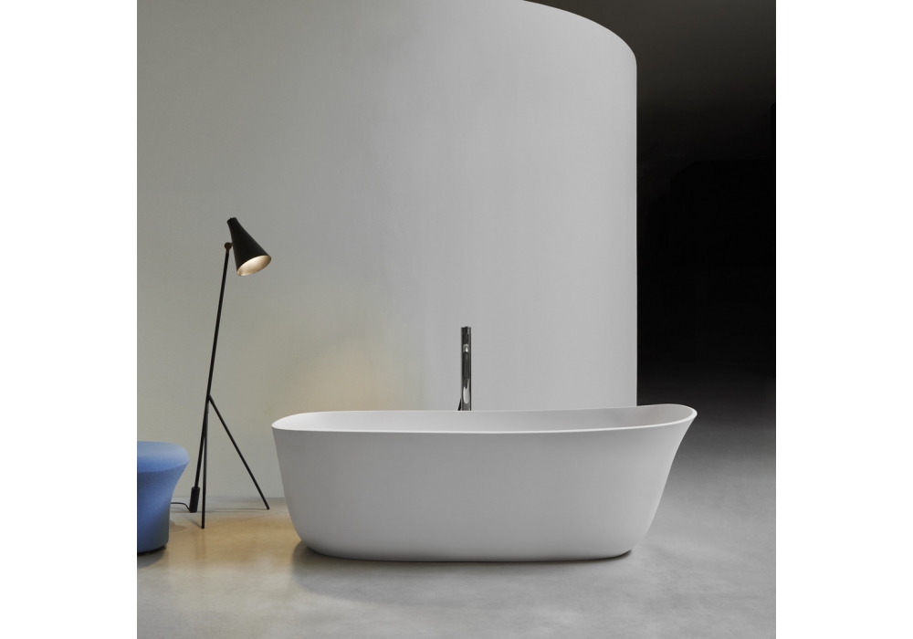 Dafne firmata da Daniel Debiasi e Federico Sandri per Antonio Lupi è una vasca da bagno ovale in pietra, in Cristalplant o in Colormood verniciabile internamente ed esternamente, completa di piletta con sistema di scarico a pressione clik clak, sifone e tubo flessibile.
