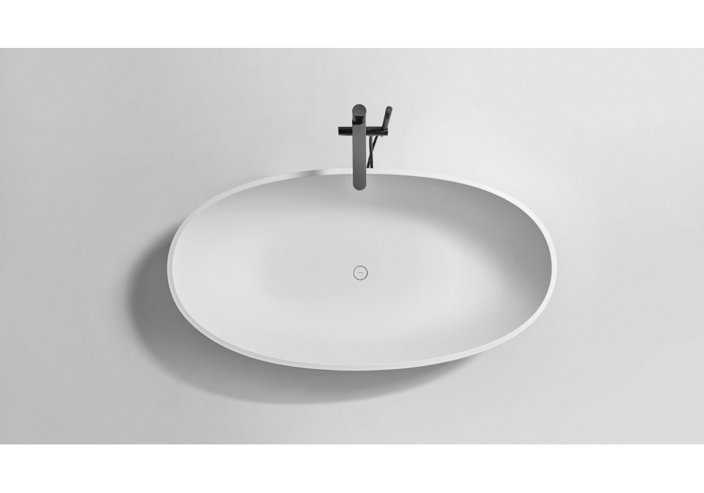 Reflexlight firmata da Antonio Lupi è una vasca da bagno ovale in Flumood, verniciabile esternamente, in Colormood verniciabile internamente ed esternamente, completa di piletta con troppopieno automatico invisibile, sifone e tubo flessibile.