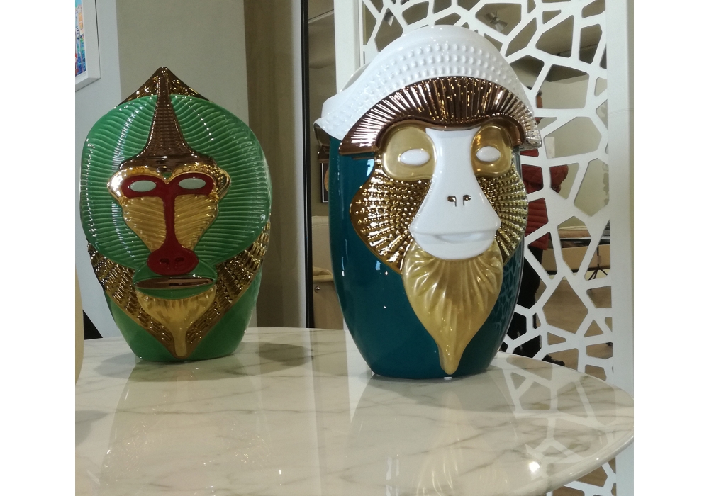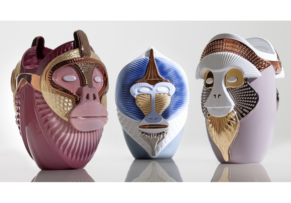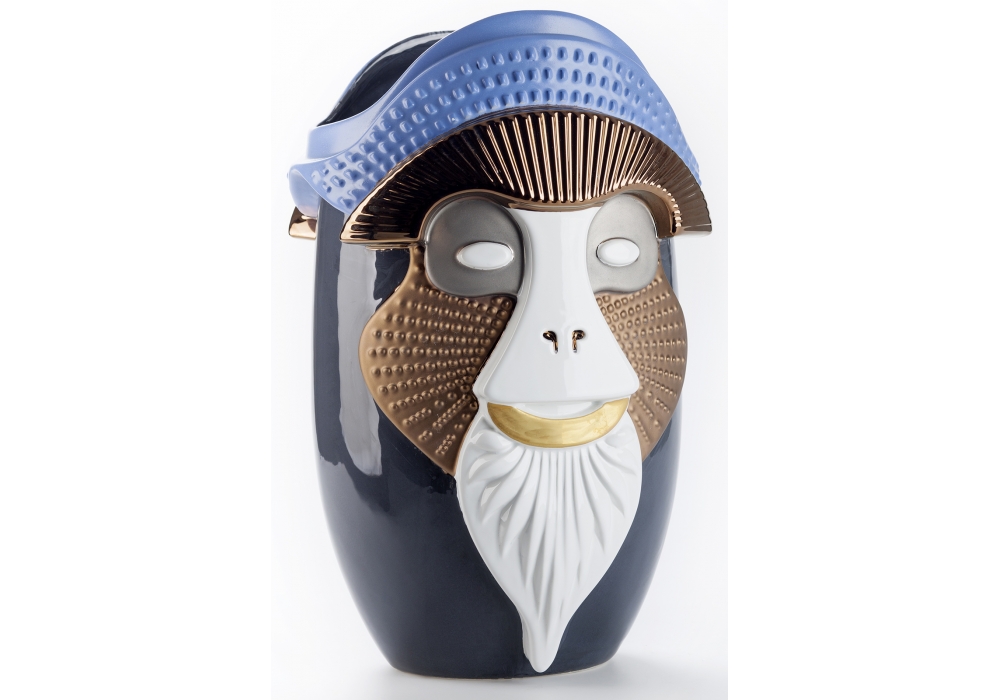 Primates Brazza firmato da Elena Salmistraro per Bosa è un vaso in ceramica arricchito con smalti colorati e metalli preziosi, in stile moderno, che riproduce le livree delle scimmie attraverso la vivacità di colori e riporta questo animale nel nostro ambiente domestico per sedurci con la sua forza vitale. Brazza è disponibile in 3 diversi modelli.