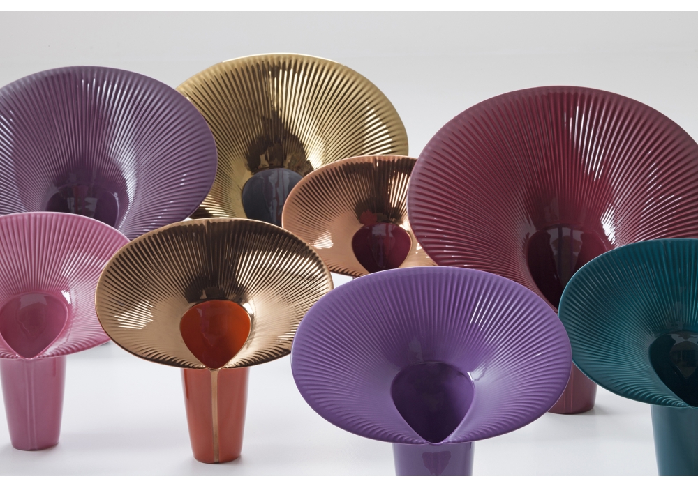 Fusca firmata da Constance Guisset per Bosa è una collezione di vasi realizzati in ceramica smaltata e metalli preziosi. Disponibili in due diverse dimensioni.