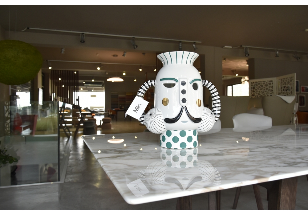 King firmato da Jaime Hayon per Bosa è un vaso in ceramica smaltata della collezione TheatreHayon, che comprende anche altri vasi, teiere e portacandele.
