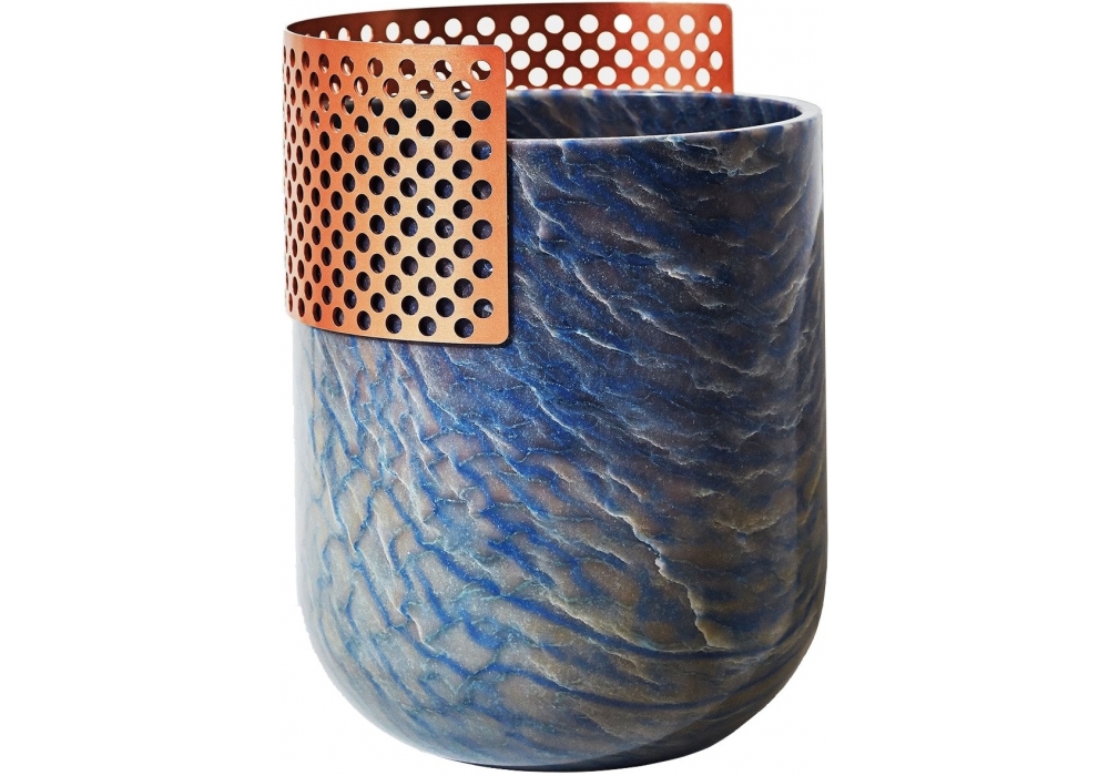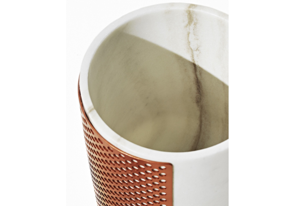 Rabbet firmato da Patricia Urquiola per Budri è un vaso realizzato in marmo, disponibile in 3 finiture con una griglia in metallo color rame. Disponibile in diversi modelli.