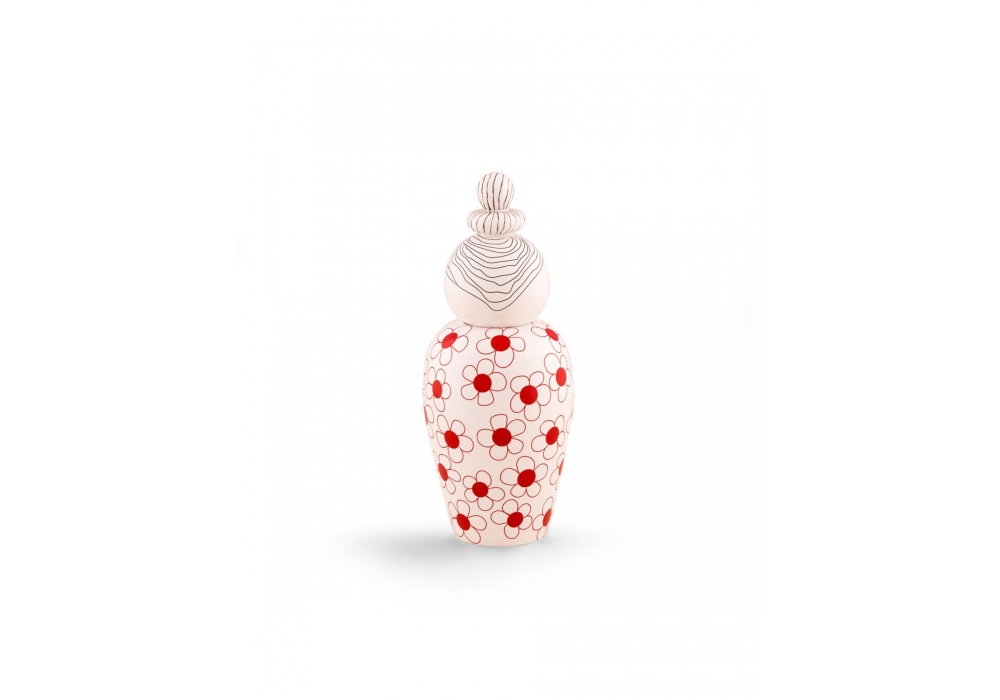 Le Canopie Pepa firmato da Elena Cutolo per Saletti è un vaso con coperchio di forma circolare in porcellana bianca decorata.
