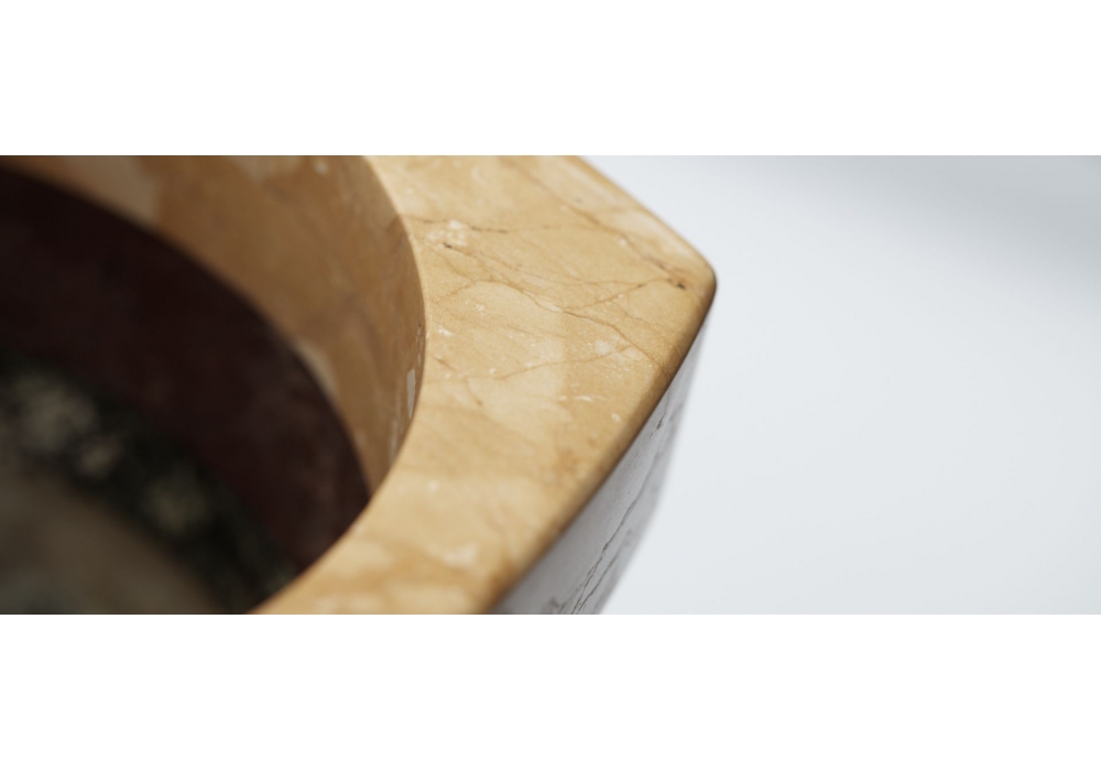 Mina firmato da Cristina Celestino per Budri è un vaso composto da bangles di differenti colori e misure, realizzato in Nero Assoluto, Rain Forest Green, Rosso Barocco, Giallo Noce e Onice Miele.