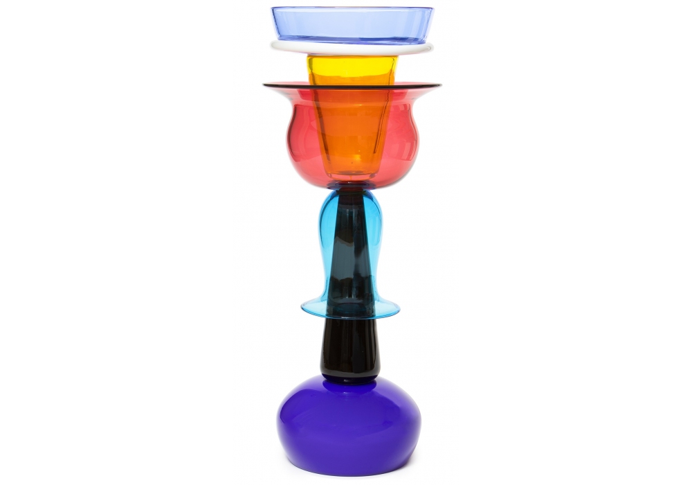 Imera firmato da Ettore Sottsass per Memphis Milano è un vaso realizzato in vetro soffiato.