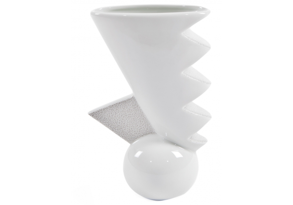 Titicaca firmato da Matteo Thun per Memphis Milano è un vaso realizzato in ceramica bianca con decori.