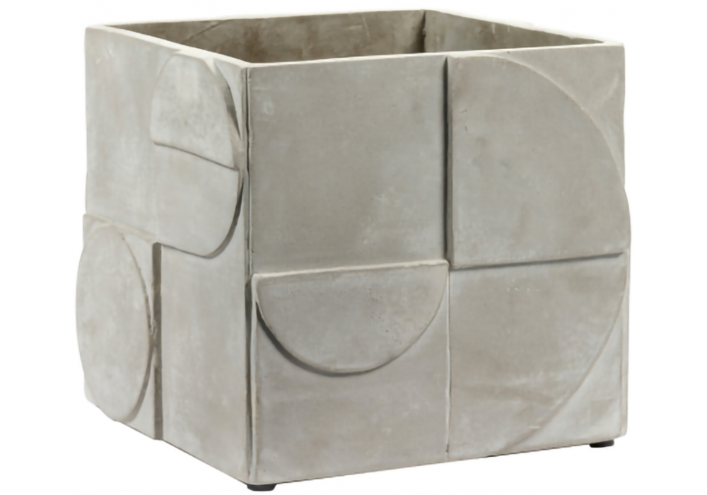 Seventies firmato da Marie Michielssen per Serax è un vaso interamente realizzato in cemento di forma quadrangolare, con superficie decorata da forme geometriche. Seventies è disponibile in due differenti dimensioni ed un'unica finitua cemento grigio.