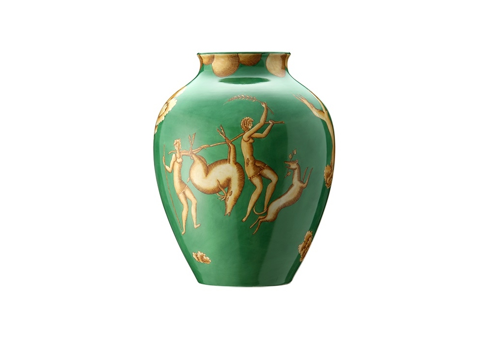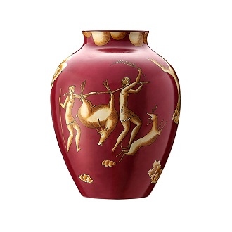 Vaso ad Orcino Gio Ponti, La Venatoria firmato da Gio Ponti per Ginori 1735 è un vaso decorato realizzato in porcellana. Il decoro "Venatoria" è stato ideato da Gio Ponti per essere sviluppato specificatamente su maiolica, anche se lui stesso ha poi disposto che venisse eseguito pure su porcellana in oro graffito con la punta d’agata. Per il suo tema narrativo, composto da scene di caccia al daino condotte da Amazzoni con la loro muta di cani, questa serie ha assunto la denominazione di Venatoria. Disponibile in 2 finiture.