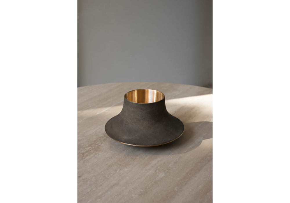 Cap53 firmato da Angelo Mangiarotti per AgapeCasa è un vaso ricavato da fusione in bronzo con stampo a cera persa, con superifici esterne trattate con patina di nitrato d'argento steso a caldo e superficie interna e bordi lucidati.