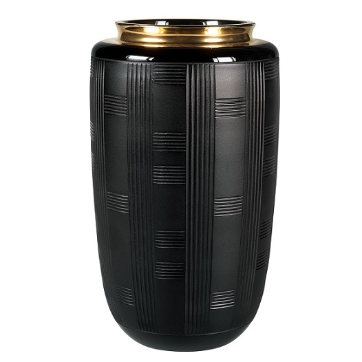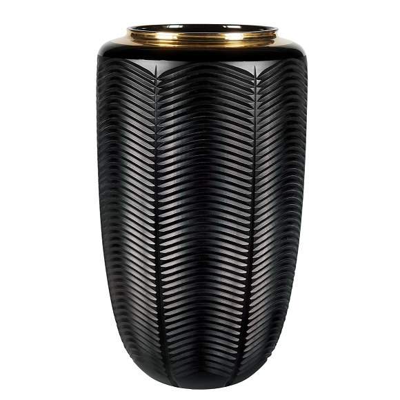 Jet Black firmato da Vista Alegre è un vaso realizzato in vetro nero con texture satinata opaca e collo in oro dipinto a mano.