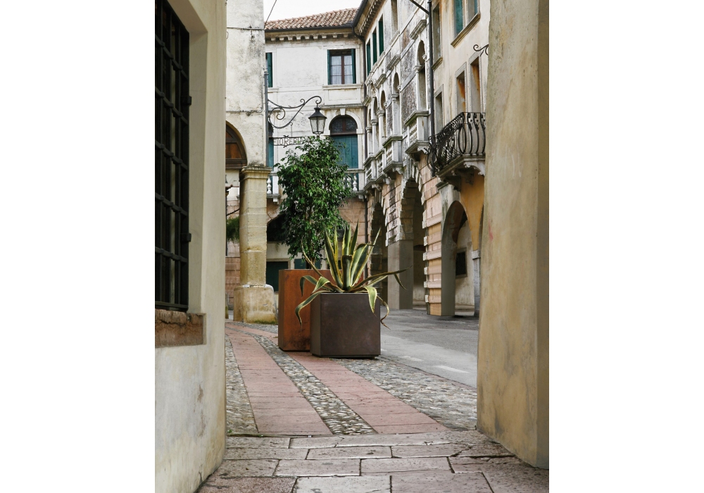 Cube firmata da R&D De Castelli per DeCastelli è una fiorera realizzata in metallo, completo di vaso interno in plastica. Disponibile in diverse finiture e dimensioni.
