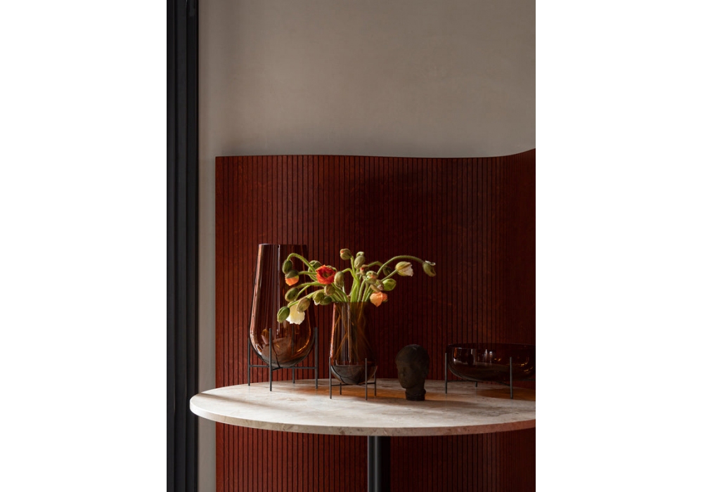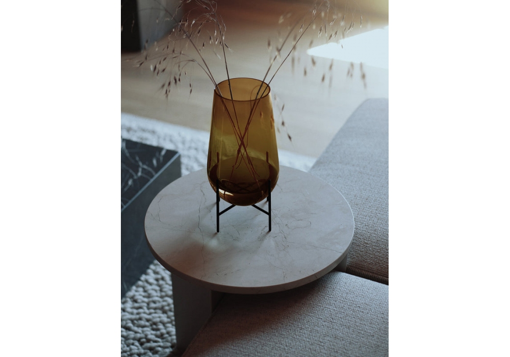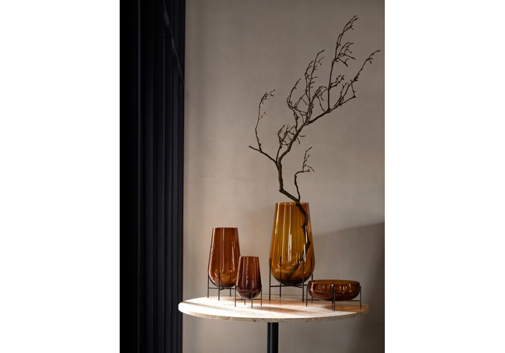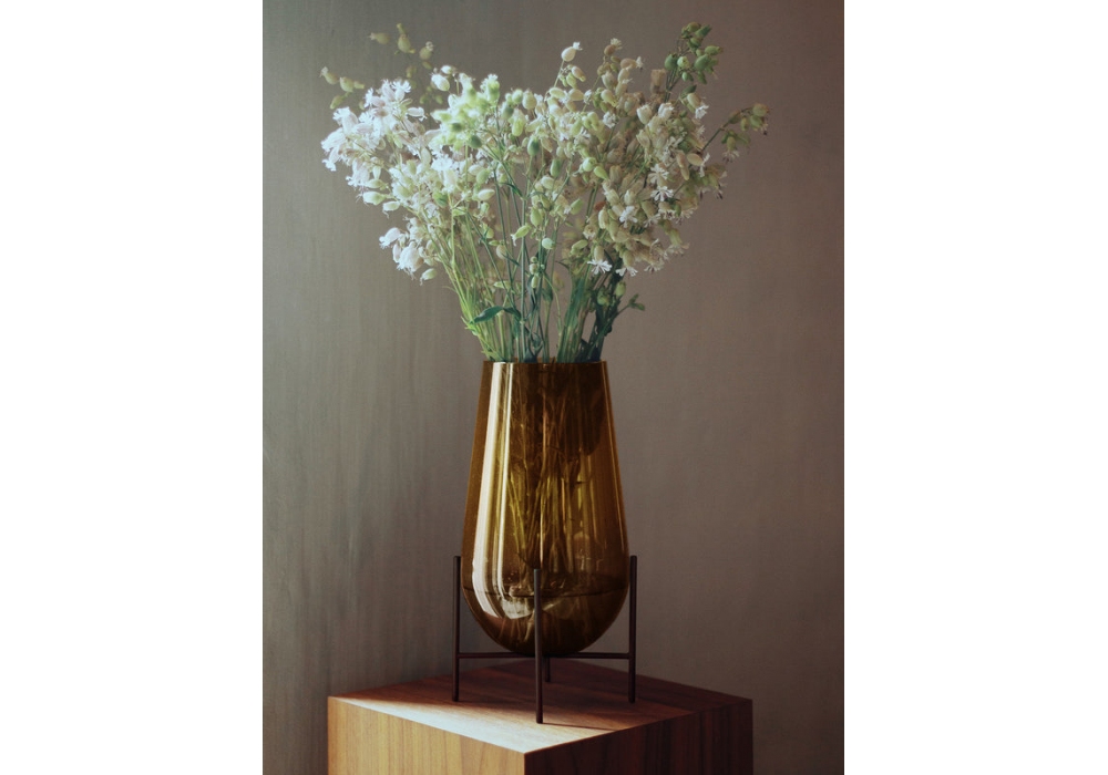 Échasse Small firmato da Theresa Rand per Audo Copenhagen è un vaso in vetro soffiato e gambe in ottone massiccio. Disponibile in diverse finiture.