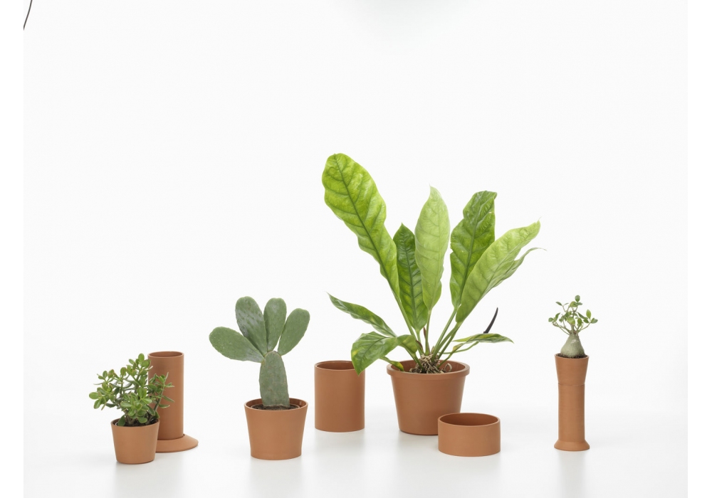 Terracotta Pots firmata da Thélonious Goupil per Vitra è una collezione di vasi realizzati con densa argilla cotta. Le forme simili a colonne dei vasi di vario formato fungono da piedistalli per le piante che contengono, alzandole e sottolineandone la presenza nella stanza. Disponibili in quattro misure.