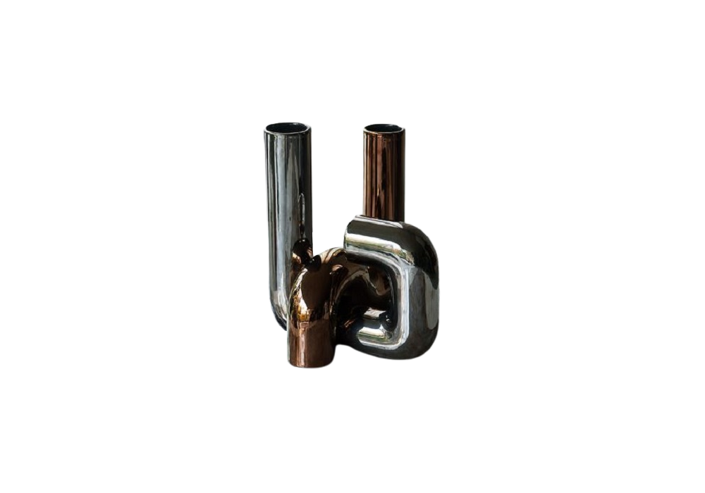 Pi-Dou firmato da Alvino Bagni per Tacchini è un vaso in ceramica, smaltato color platino o bronzo. Disponibile in due versioni, acquistabili singolarmente o in coppia.