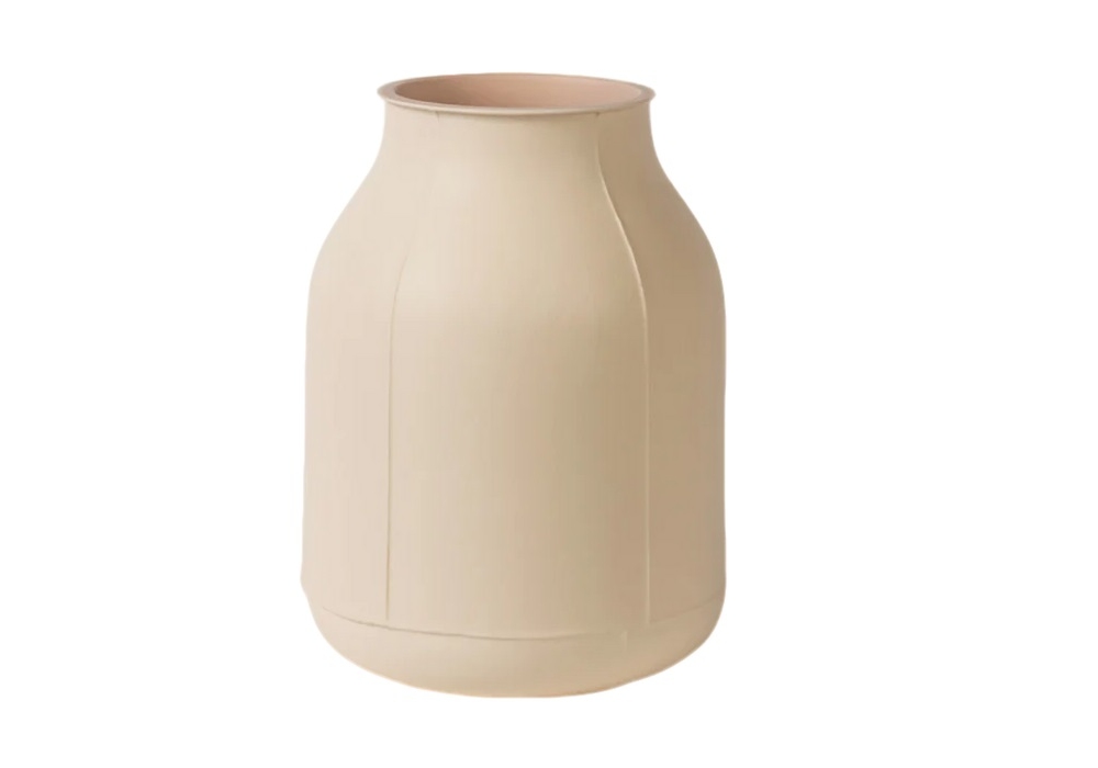 HUB-15 firmato Benjamin Hubert per Bitossi Ceramiche è un vaso con coperchio a colaggio in terra bianca. Dipinto in smalto matt sabbia interno e smalto matt avorio esterno.