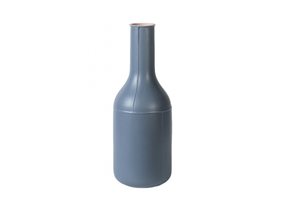 HUB-17 firmato Benjamin Hubert per Bitossi Ceramiche è un vaso a forma di bottiglia a colaggio in terra bianca. Dipinto in smalto matt rosa all'interno e azzurro polvere all'esterno.