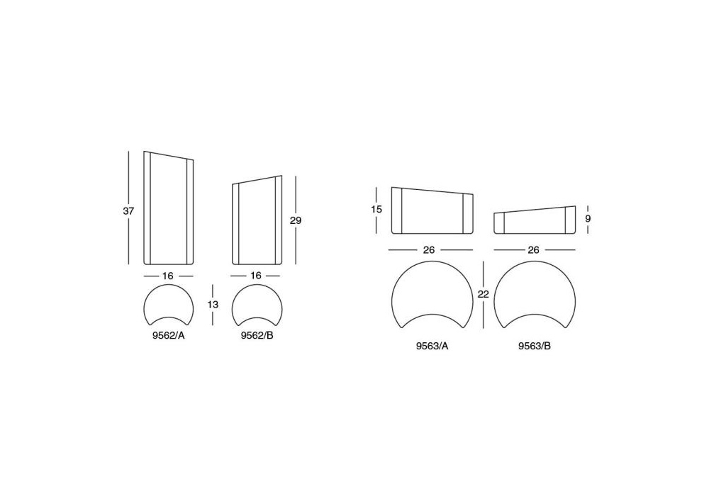 | Dimensioni | 16 x 13 x H 29 cm; 16 x 13 x H 37 cm; 26 x 22 x H 9 cm; 26 x 22 x H 15 cm. |