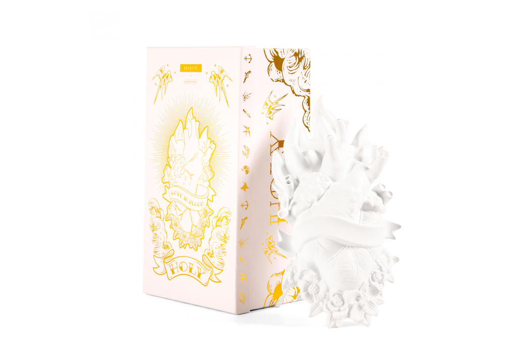 Holy Love In Bloom firmato da Marcantonio per Seletti è un vaso realizzato in porcellana bianca personalizzabile con decalcomanie alfabetiche incluse per scrivere un nome, un sogno o un ideale caro.