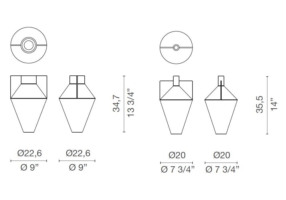 | Dimensioni | Ø 22.6 x H 34.7 cm; Ø 20 x H 35.5 cm |