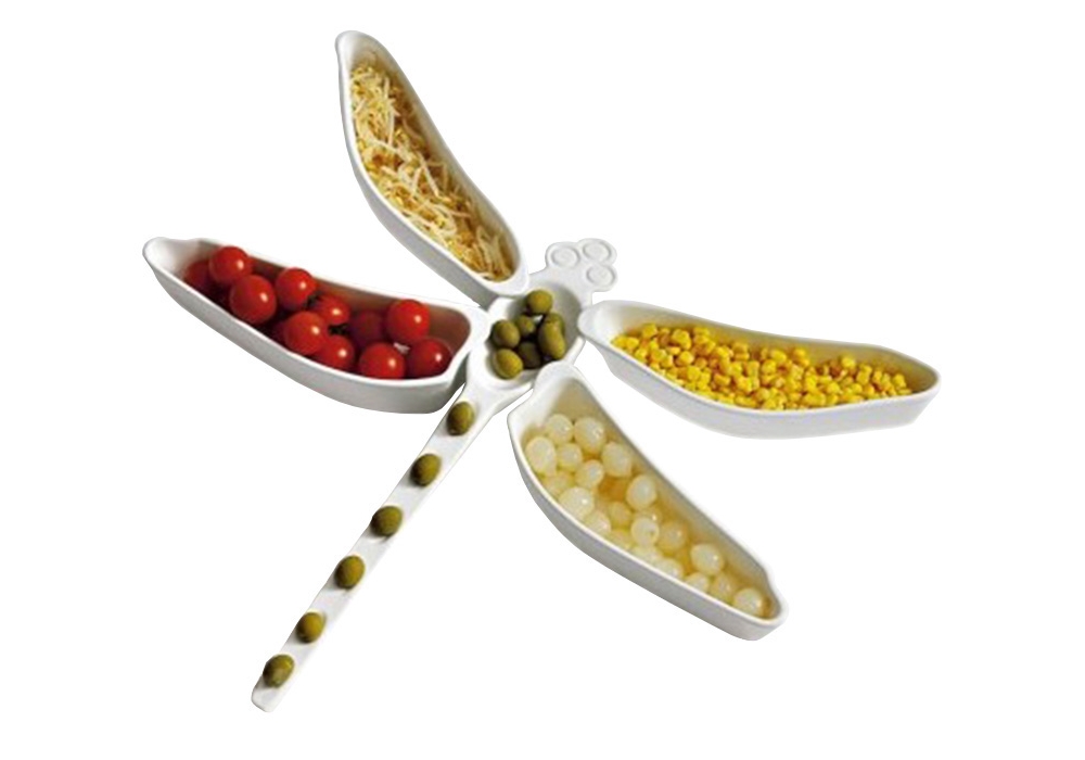 Libellula firmato da Francesco Bosa per Bosa è un vassoio in ceramica smaltata composto da 5 pezzi, perfetto per antipasti. E' un oggetto originale che dà un tocco di allegria alla tavola. Disponibile in diverse finiture.