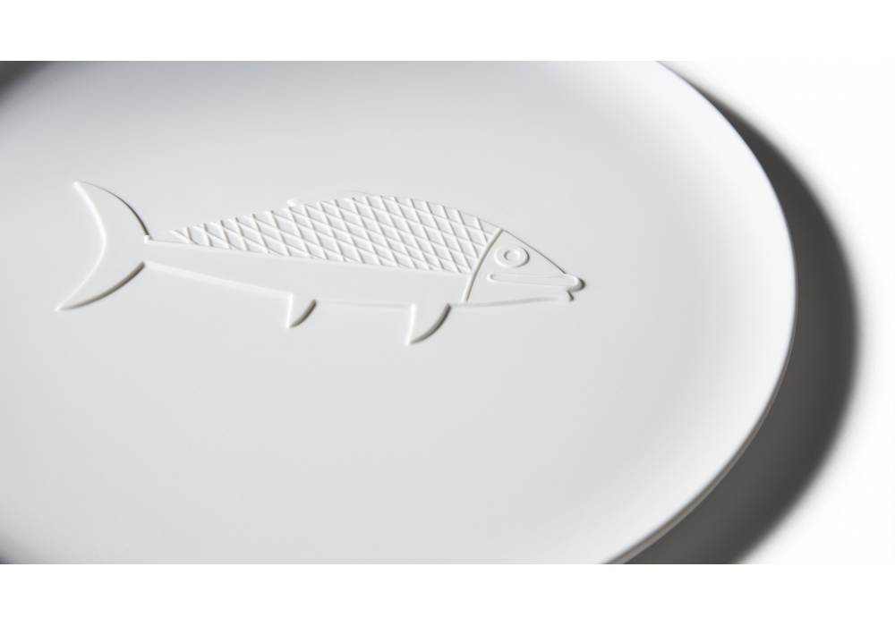 Collection Chandigarh firmato da Le Corbusier per Cassina è un vassoio in porcellana pura non smaltata, disponibile in tre dimensioni e con tre diversi simboli in bassorilievo.