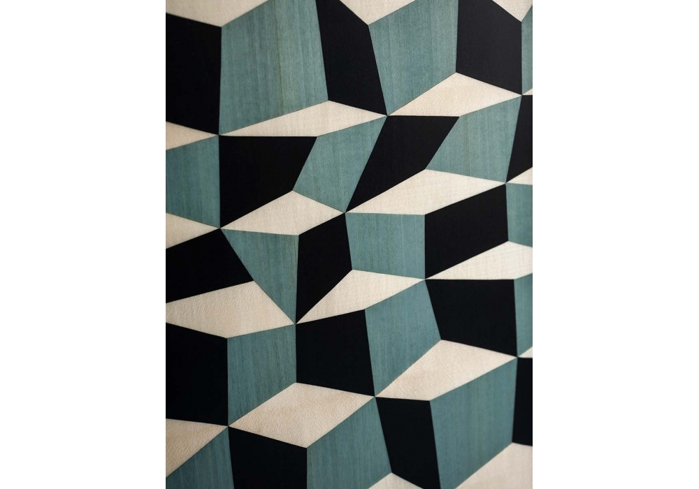 Tarsia firmato da Maria Gabriella Zecca per Tacchini è un vassoio in legno disponibile in due finiture, con lavorazioni e grafiche geometriche.