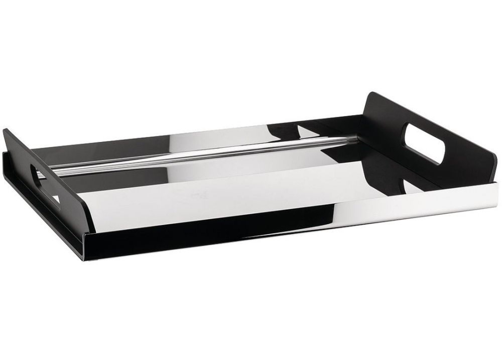 Vassily firmato da Giulio Iacchetti per Alessi è un vassoio rettangolare realizzato in acciaio inox 18/10 con manici in resina termoplastica.